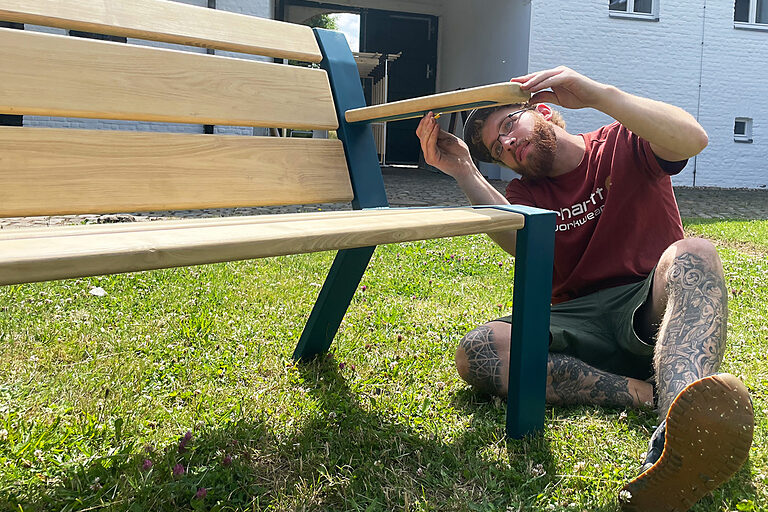 Aachen. Mitte Juli wird Michael Schneider seine Ziehklinge zur Seite legen, die Arbeitshose gegen Alltagskleidung tauschen und alle Besucher dazu auffordern Platz zu nehmen – auf seiner Gartenbank. Der gelernte Werkzeugmechaniker und Designstudent der Akademie für Handwerksdesign der Handwerkskammer Aachen hat sich zum Thema seiner Examensarbeit gemacht, eine Sitzgelegenheit zu gestalten, die zum Verweilen einlädt, Bindung schafft, Platz für Kommunikation bietet, zudem noch überaus komfortabel ist, mit Farbakzenten die Umgebung gestaltet und den wetterbedingten Einflüssen trotzt.