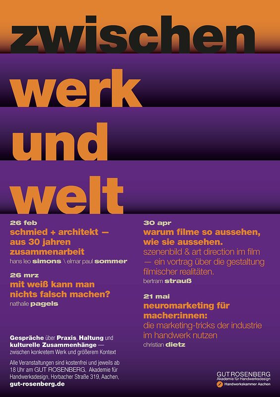 An vier Abende laden wir Sie herzlich zu Vorträgen ein, die vier Perspektiven auf Praxis, Haltung und kulturelle Zusammenhänge im Design beleuchten.